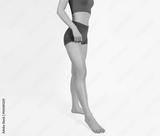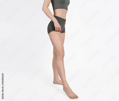 Beautiful well-groomed women's legs close-up on a white isolated background, The concept of epilation of foot skin care or getting rid of cellulite. Female figure for measurement, graphics, design.