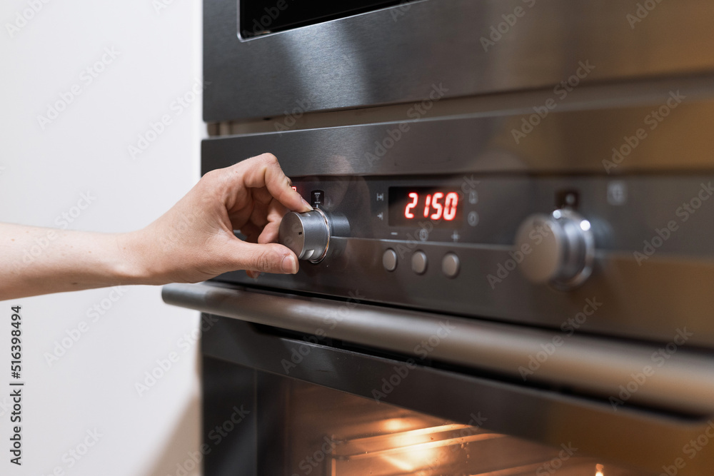 Person's hand dealing with oven timer setting