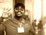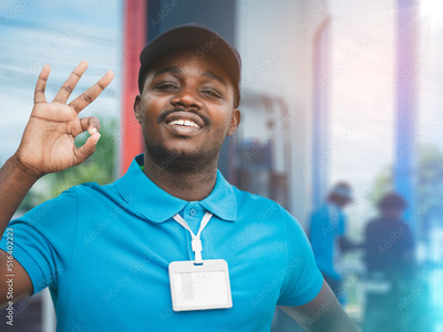 Uniform african man gas station worker refueling a car. Gas station worker filling up fuel into car with smile