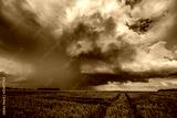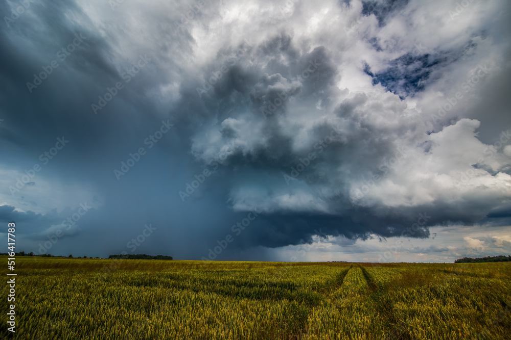 Storm clouds over field, tornadic supercell, extreme weather, dangerous storm