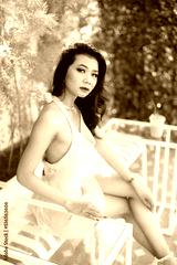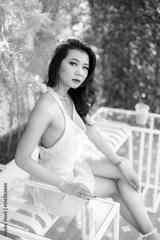 Portrait beautiful asian freelance Success people business woman fashion model in summer white sleeveless dress and coffee in cup in coffee shop.