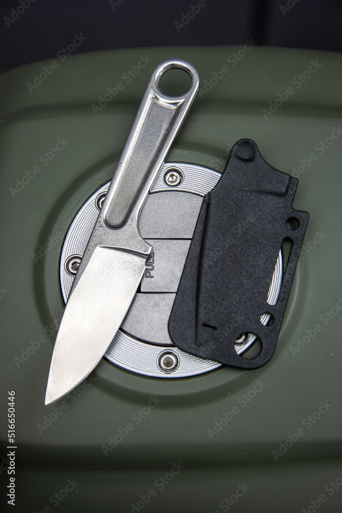 A knife with a metal handle made from a wrench. Tool weapon. Motorcycle back.