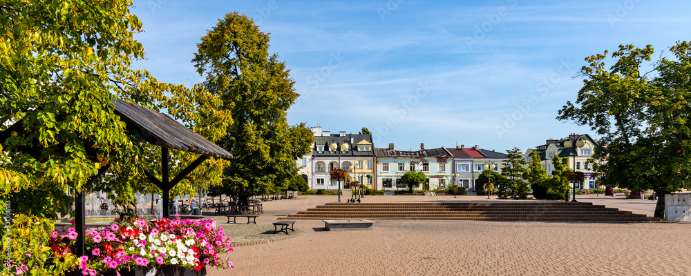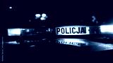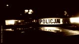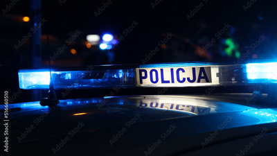 Nocna interwencja alarmowa policji - Sygnalizator błyskowy niebieski na dachu radiowozu policji polskiej w nocy.