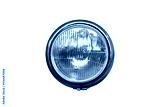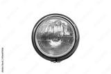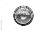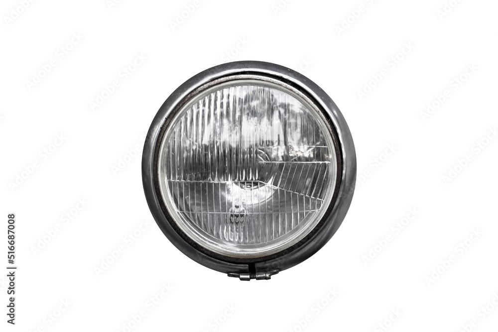Round vintage headlight, old-timer vehicle detail isolated on white