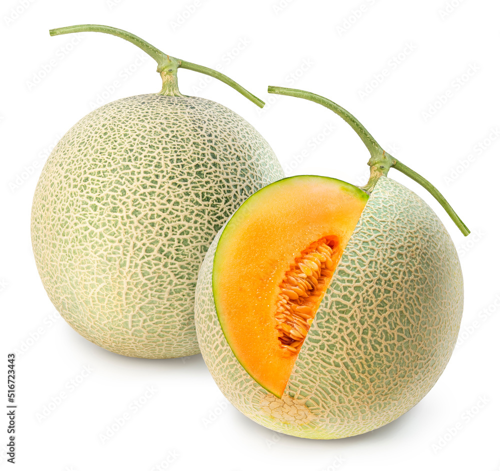 Orange melons isolated on white background, Melon or cantaloupe isolated on white background With clipping path.