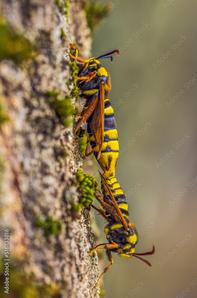 Hornet Moth - Sesia apiformis, mating process of butterflies
