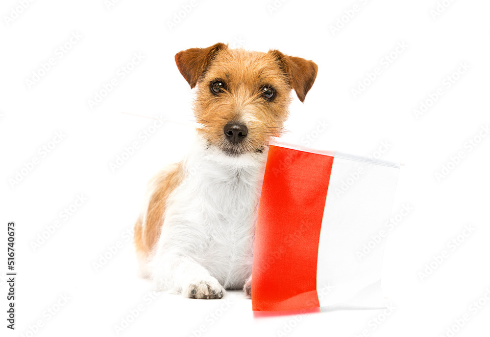 dog and red and white flag of poland