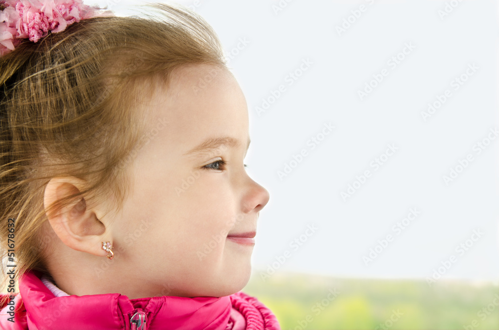 Portrait of cute little girl looking away