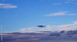 Natural background. Blue sky with clouds at sunset. Closeup.