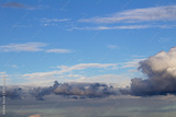 Natural background. Blue sky with clouds at sunset. Closeup.