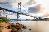 Long exposure Hercilio Luz bridge at sunrise, Florianopolis, Brazil
