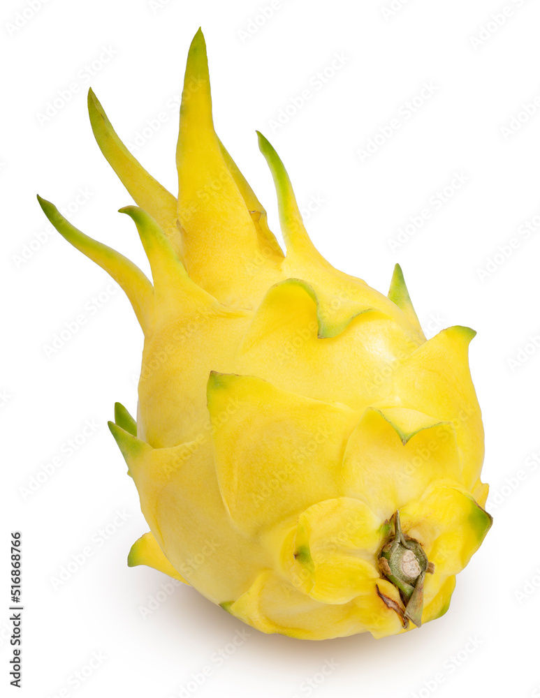 Yellow Dragon fruit isolated on white background, Dragon fruit or Pitahaya isolated on white With work path.