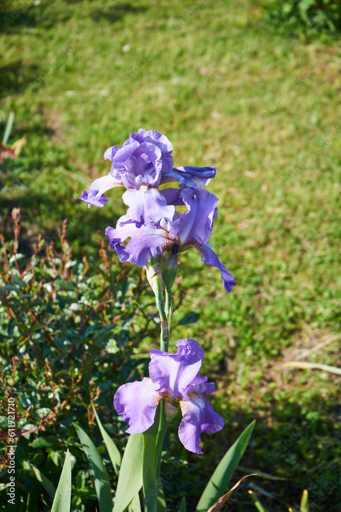 Street portrait of young woman looking at camera with multicolored flags in background.