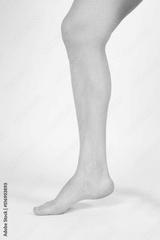Barefoot and legs isolated on white background. Closeup shot of healthy beautiful female feet. Health and beauty concept. Side view of human foot ream with neutral manicure or pedicure. Sole of foot.