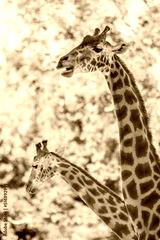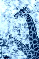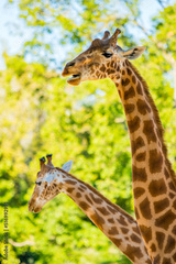 Africa savanna giraffe, head, nature. Giraffe in front of some green trees.