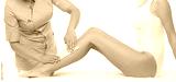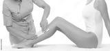 Professional worker is removing hair from young and beautiful female body and legs with hot wax. Girl has a beauty treatment procedure. Depilation, epilation and health care concepts.