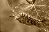Rusty tussock moth caterpillar, Orgyia antiqua larva on leaf