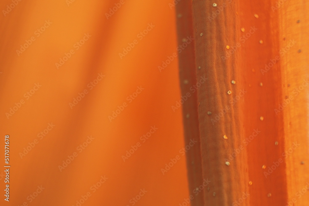 Pomarańczowa tkanina z brokatem w zbliżeniu