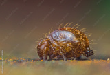 Globular springtail Dicyrtomina ornata or fusca in very close view