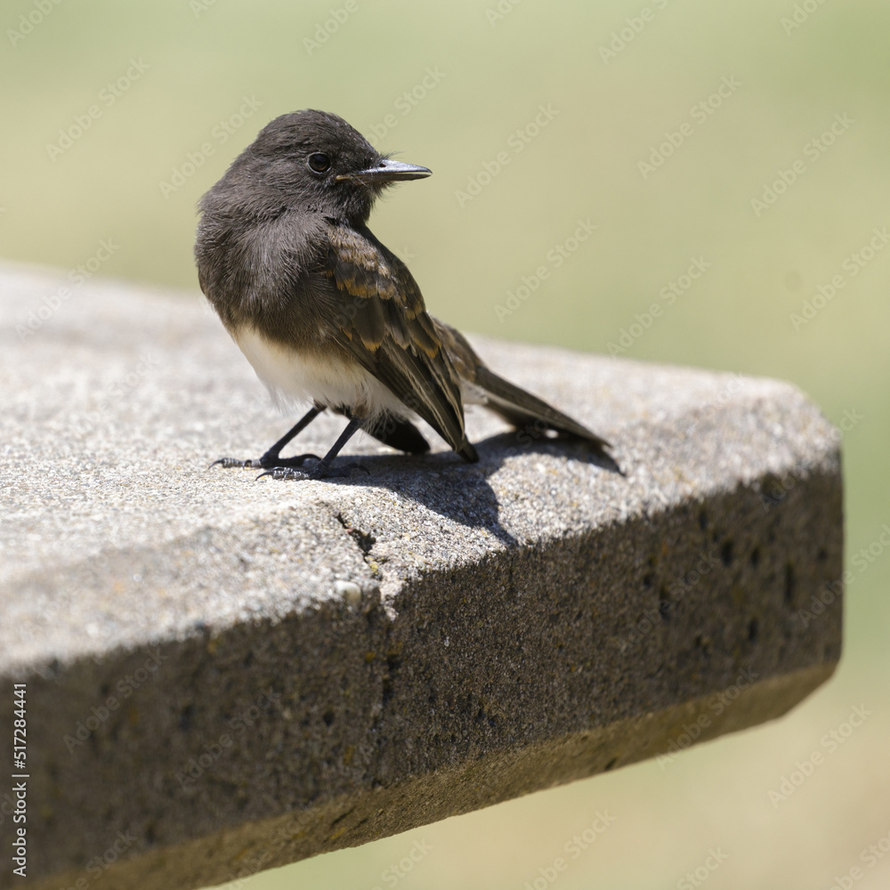 Juvenile Black Phoebe Scanning for insects. Santa Clara County, California, USA.