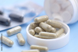 Medical and healthcare, Prescription medication for treatment. Pharmaceutical cure in a container for health. Themed pharmacy, capsule pills containing antibiotic medicine