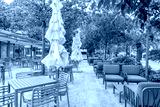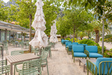 Empty outdoor hotel restaurant garden