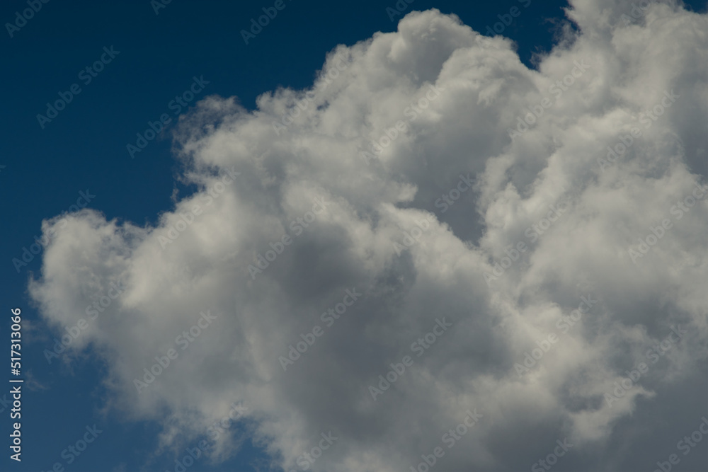 Moody clouds. Blue sky background. Low key photo