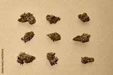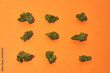 Set of green dry crushed marijuana buds on orange