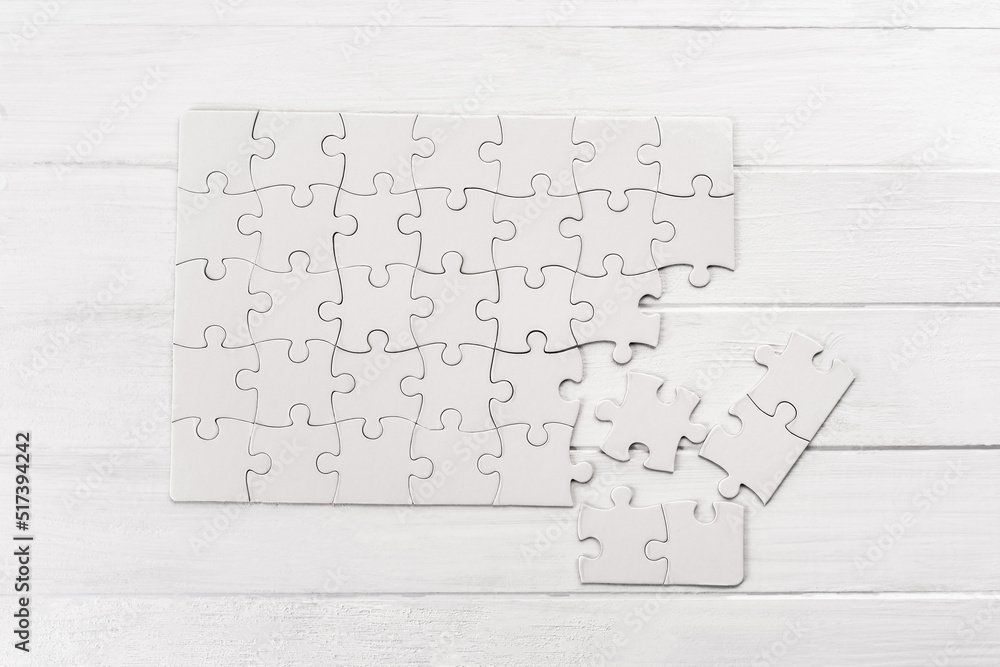 Small white puzzle sample on wooden table