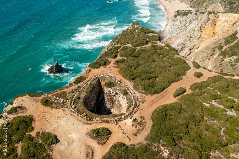 Drone Fojo da Adraga aerial view of crumbling cliff