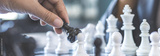 Business woman playing chess, Proactive business planning and marketing strategy just like playing chess, Business competition and success or leadership, Planning and strategies for victory concept.