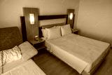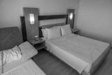 Beautiful view of the interior of a hotel room with a beds. Rhodes. Greece.