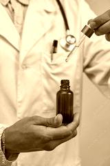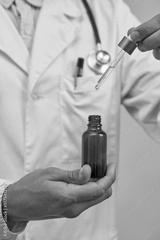 Cropped of doctor holding dropper with oil bottle