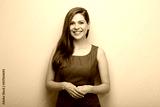 Smiling business woman in dress with folded hands. isolated female business person portrait.