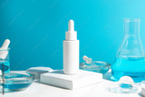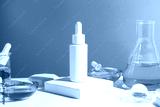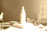 scientist and mockup tube bottle for skin care cosmetic , product branding, cream lotion treatment, laboratory room testing experimental