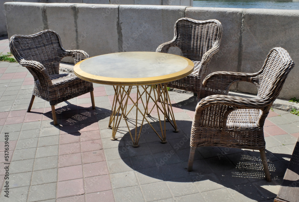 Outdoor cafe table and chairs on a summer day