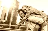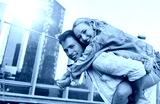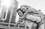 summer holidays, love and people concept - happy young couple having fun on roof top parking
