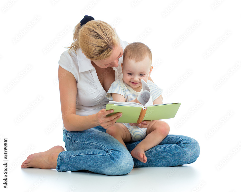 mother reading a book to her baby boy