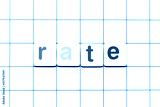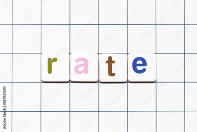 Colorful tile letter in word rate on white grid background