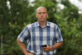 Middle-aged man with phone in hand