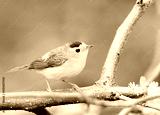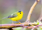 Wilson's warbler perched on a dead tree limb