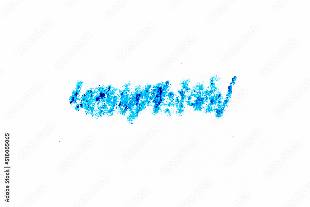 Blue color crayon hand drawing in sribble line shape on white paper background