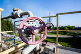 Oil refinery plant and industry zone. Oil and gas petrochemical industrial background