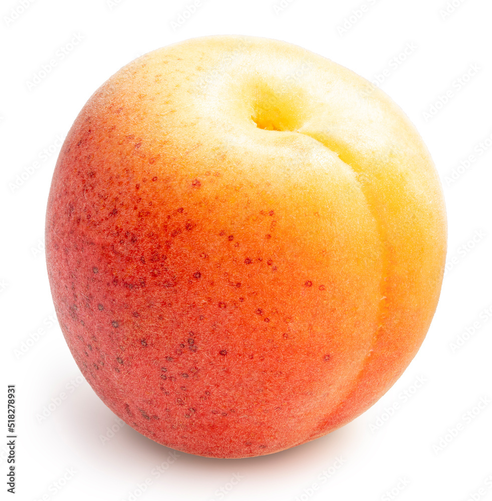 Yellow Apricot fruit with leaf isolated on white background, Apricots isolated on white With work path.