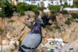 Beautiful view of a pigeon on the beach in Nerja Spain