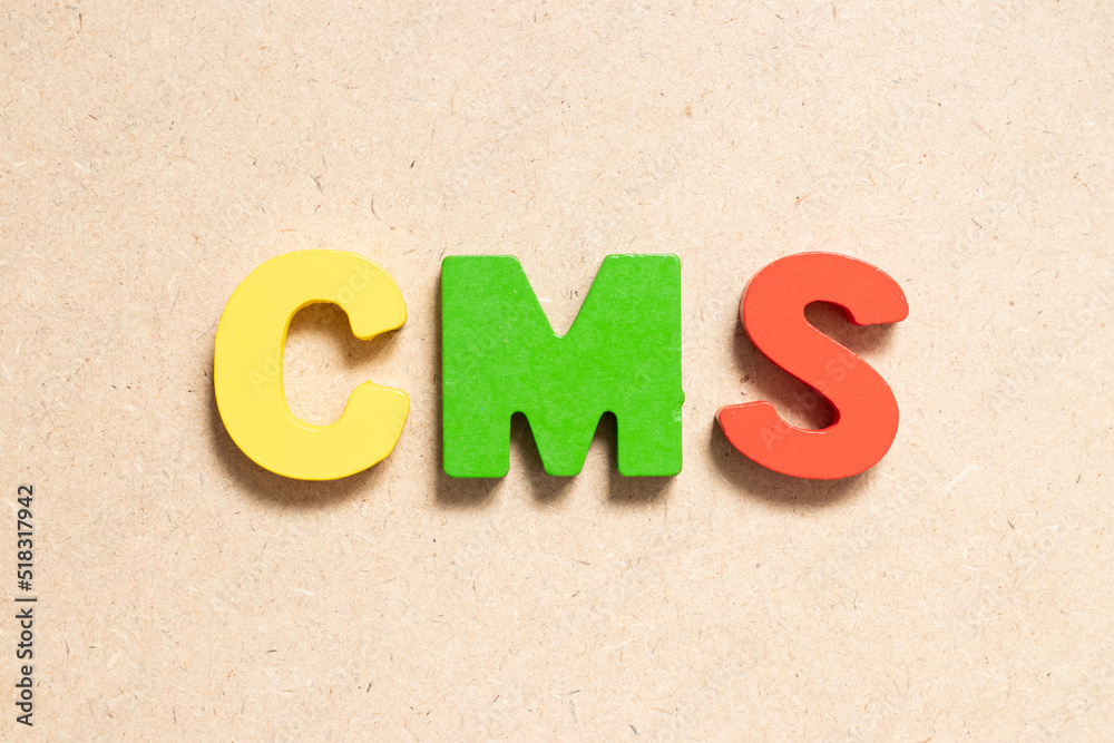 Color alphabet letter in word CMS (Abbreviation of Content management system) on wood background