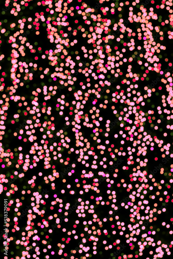 Tiny pink bokeh lights with orange, red, light and dark pink, and gold.