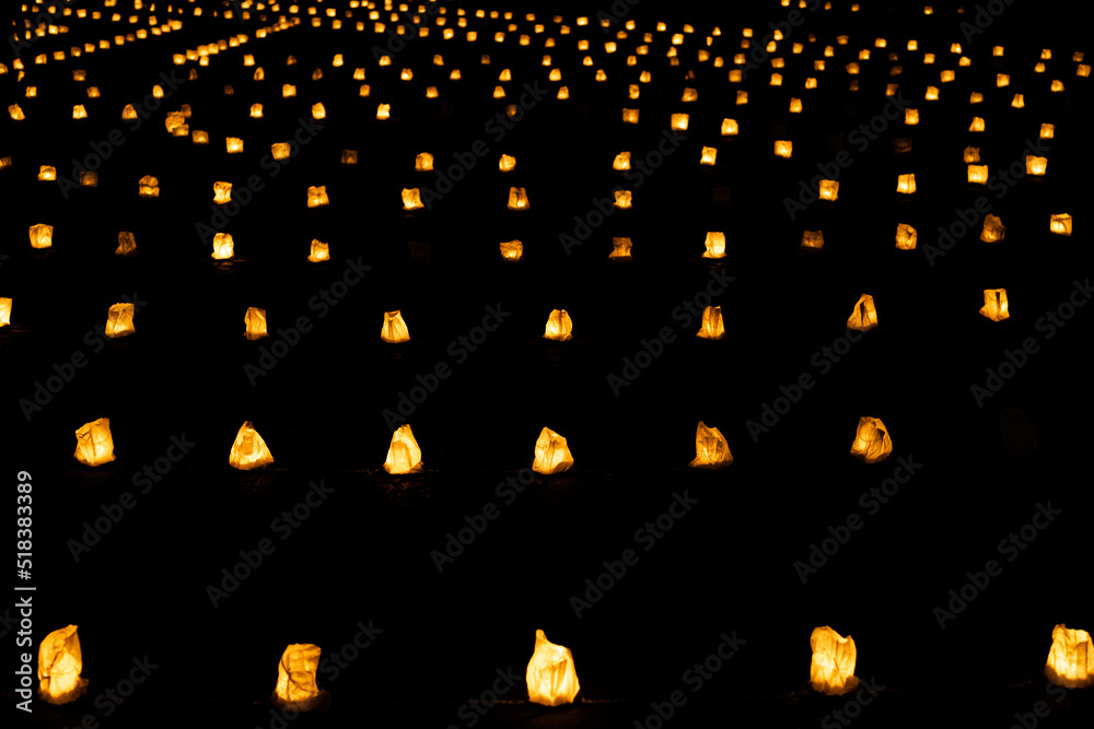 the candle festival with 3500 candles forming a labyrinth in the central square during the International Theatre Festival from Sibiu, Romania.