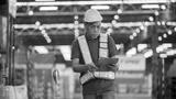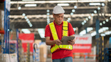 Male and female warehouse workers work at distribution centers. Supervisors analyze new arrivals of additional items in the warehouse department. Employees who organize the distribution of goods to th