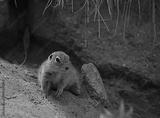 ground squirrel stands near a hole in the tract Dzhily-su Kabardino-Balkaria Russia. copy space